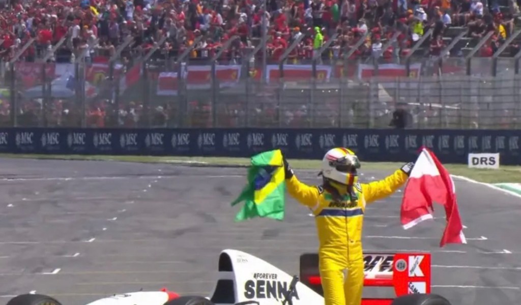 Em homenagem a Ayrton em Imola, Sebastian Vettel levantou as duas bandeiras- da Áustria e do Brasil- e disse “Era o que Senna iria fazer”, honrando, anos depois os dois pilotos que perderam a vida em 1994.