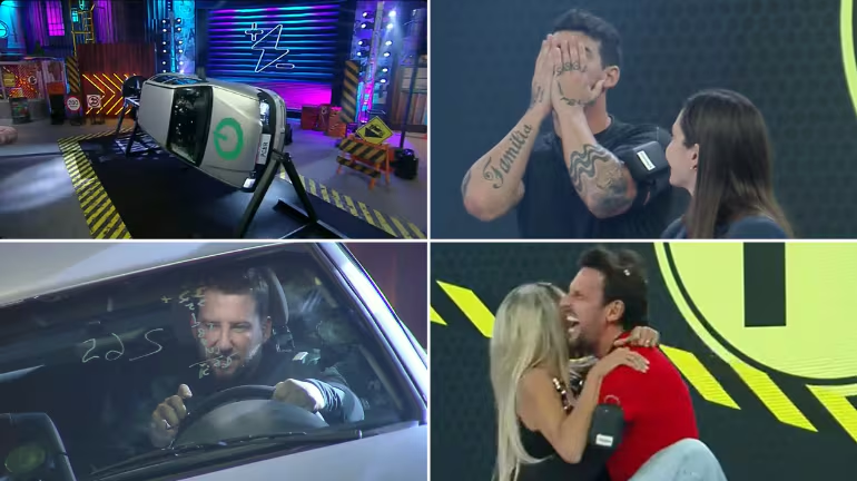 Começamos a semana com os maridos sendo presos em um carro giratório, onde tinham que resolver uma equação numérica baseada em dados pessoais das esposas — idade, número do sapato, letras no nome… Aquela hora em que ser de humanas é um perigo hahaha
