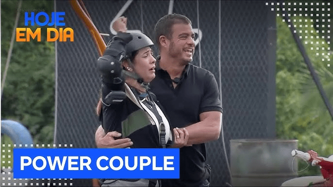 Na terça-feira, foi a vez das esposas darem um show (ou vexame) numa bicicleta suspensa, lá no alto. Já deu aquele medinho aqui kkkkkkk Elas tinham que pedalar, recolher plaquinhas e acertar perguntas sobre o relacionamento — que já tinham sido respondidas pelos maridos.