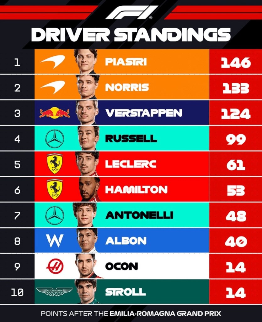 A F1 se despede da Emilia-Romagna com mudanças no top 10 do F1 Pilot World Championship. Mas mantendo o líder!
