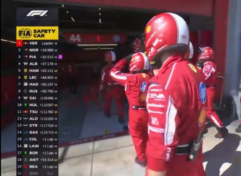No final, o carro com problemas era o do Kimi Antonelli, que parou no meio do circuito e precisou da intervenção do Safety Car para retirada.